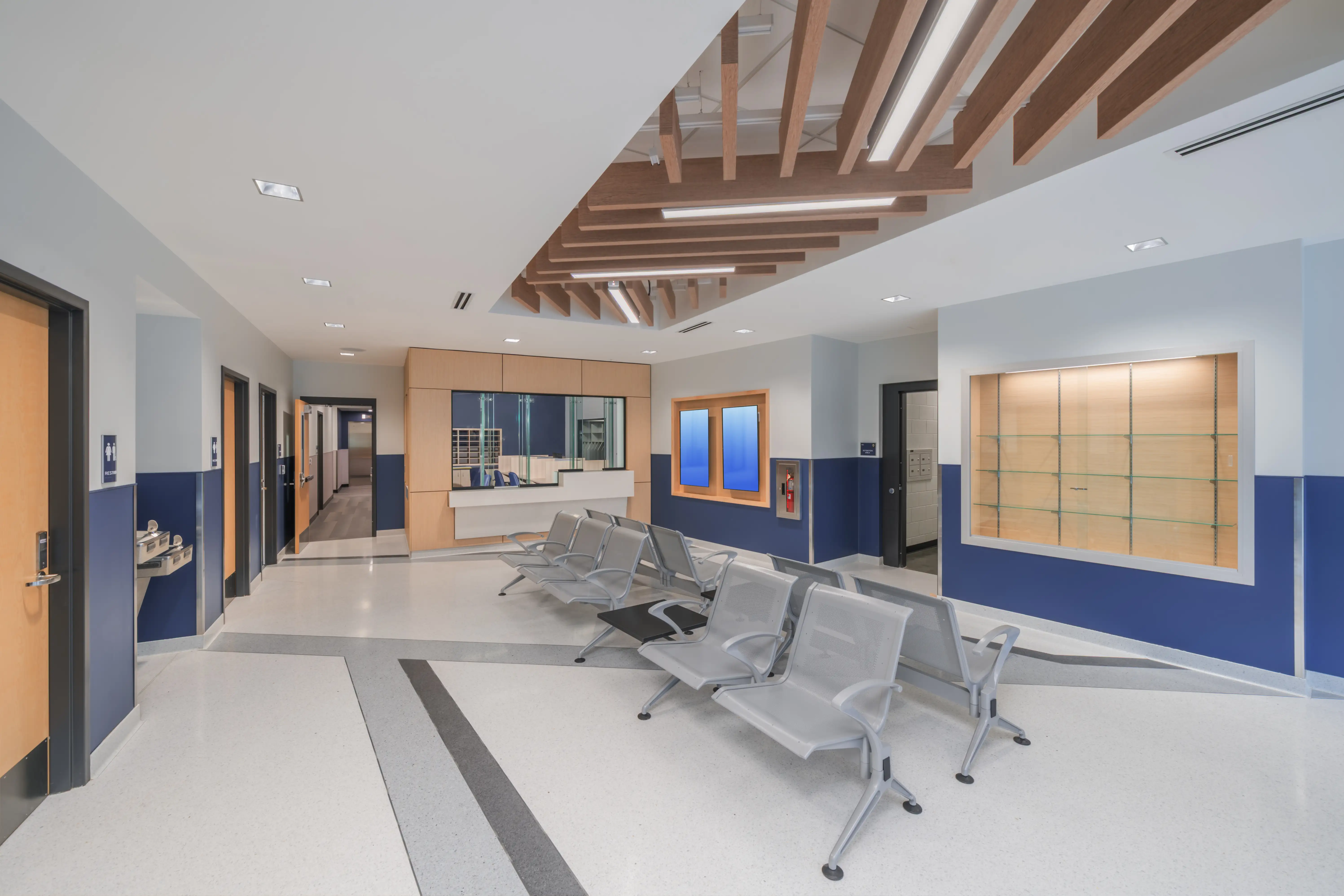 State-of-the-art police facility designed to enhance law enforcement operations in Gaithersburg. This ground-up project features a 28,294 SF, two-story police station and a 59,526 SF, two-level secured parking garage. This is Montgomery County’s first public net-zero, sustainably designed, energy-efficient building.